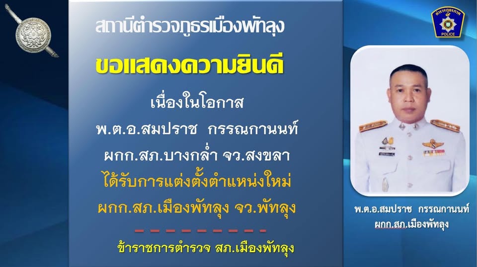 ตำแหน่งใหม่ ผกก.สภ.เมืองพัทลุง