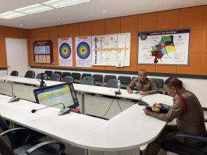 พ.ต.ท.กิตติพงศ์ วัชรจิตรกุล สว.จร.สภ.เมืองพัทลุง และเจ้าหน้าที่ผู้เกี่ยวข้องร่วมเฝ้าฟังการประชุม การทำ MOU งานจราจร ผ่านระบบ Video Conference ณ ห้องประชุม ศปก.สภ.เมืองพัทลุง