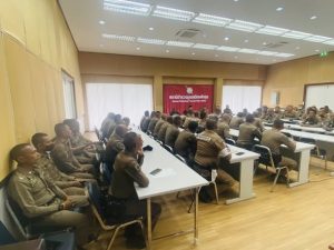มอบนโยบายของผู้บังคับบัญชางานป้องกันปราบปรามให้กับร้อยเวรปราบปราม สายตรวจรถยนต์ สายตรวจรถจักรยานยนต์ สายตรวจตำบลสายตรวจร้านทอง งานจราจร ณ ห้องประชุม สภ.เมืองพัทลุง ชั้น 4