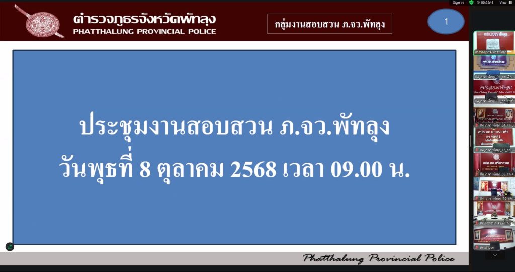 และเจ้าหน้าที่ผู้เกี่ยวข้องร่วมประชุมกำชับการปฏิบัติเกี่ยงกับการใช้โปรแกรมเพื่อช่วยเหลือในการทำสำนวนการสอบสวนคดีอาญา ณ ห้องประชุม ศปก.สภ.เมืองพัทลุง