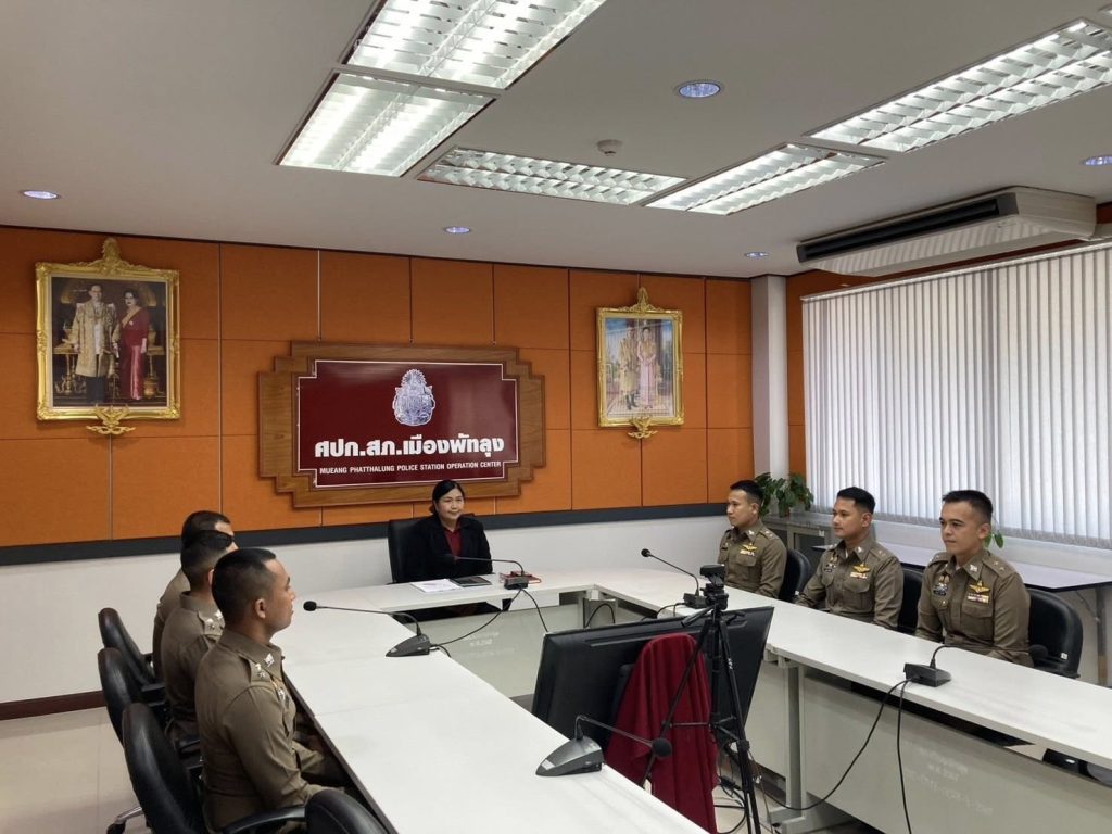 พ.ต.ท.หญิงสิรตา เประนาม สว.อก.สภ.เมืองพัทลุง ประชุมชี้แจงผู้เข้ารับการฝึกอบรม ฝึกภาคปฏิบัติงานสอบสวน ระหว่าง 5 ตุลาคม 68 – 23 มกราคม 2569 จำนวน 6 นาย ณ ห้องประชุม ศปก.สภ.เมืองพัทลุง