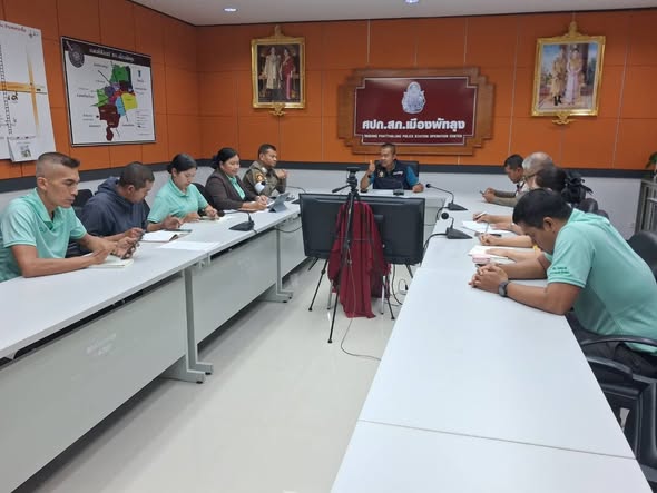 พ.ต.ท.กิตติพงศ์ วัชรจิตรกุล สว.จร.สภ.เมืองพัทลุง พร้อมด้วยเจ้าหน้าทีธุการ ร่วมประชุมเตรียมความพร้อมในการซ้อมแผนเผชิญเหตุกรณีคนร้ายประทุษร้ายร้านทอง ในวันที่ 9 ต.ค.2568