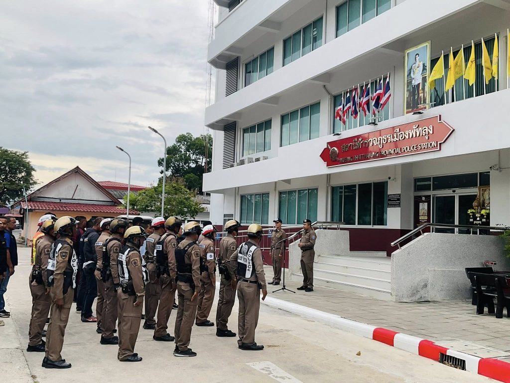 ร่วมประชุมชี้แจงภารกิจ ตรวจความพร้อม ปล่อยแถวข้าราชการตำรวจ ชุดปฏิบัติการสายตรวจรถยนต์ สายจรวจจราจร ชุดสืบสวน ชุดเคลื่อนที่เร็ว ออกปฏิบัติรักษาความปลอดภัยและความสงบเรียบร้อย ป้องกันอาชญากรรมและอำนวยความสะดวกด้านการจราจร ในพื้นที่รับผิดชอบ เนื่องในเทศกาลวันลอยกระทง ประจำปี 2568 ณ หน้าอาคารที่ทำการ สภ.เมืองพัทลุง