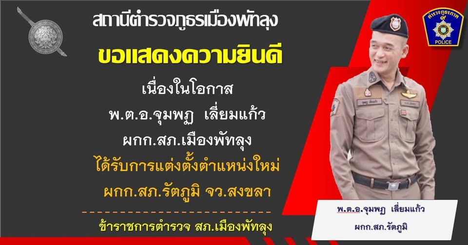 ผู้กำกับการเอ็ม เดินทางไปรับตำแหน่งใหม่ ผกก.สภ.รัตภูมิ สงขลา ขอแสดงความยินดี เนื่องในโอกาส พ.ต.อ.จุมพฎ เลี่ยมแก้ว ผกก.สภ.เมืองพัทลุง ได้รับการแต่งตั้งตำแหน่งใหม่ ผกก.สภ.รัตภูมิ จว.สงขลา ตั้งแต่ 1 ธันวาคม 2568