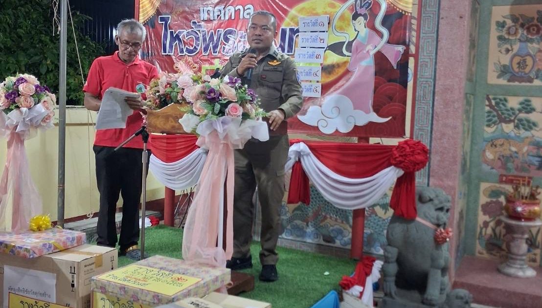 พ.ต.ท.ธเนศ พงษ์รอด รอง ผกก.ป.เมืองพัทลุง ร่วมเป็นเกียรติในงานเทศกาลตงชิว(เทศกาลไหว้พระจันทร์)งานจัดเลี้ยง2ประจำปี2568ณ ศาลเจ้าปึ้งเฒ่าก๋งพัทลุง ถ.ราเมศวร์ ต.คูหาสวรรค์ อ.เมือง จ.พัทลุงโดยมีโดยมีนางสาวศรอนงค์ สงสมพันธ์ ปลัดจังหวัดพัทลุงเป็นประธาน