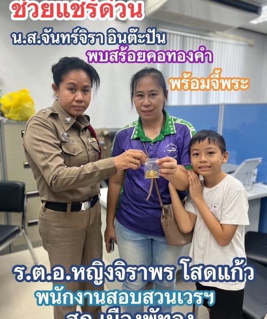 แชร์ด่วน พลเมืองดีพบทองคำ 1 บาท พร้อมจี้พระ ตามหาเจ้าของด่วนๆ เมื่อ 28 ตุลาคม 2568 ร.ต.อ.หญิงจิราพร โสดแก้ว พนักงานสอบสวนเวรฯ สภ.เมืองพัทลุง รับแจ้งจากนางสาวจันทร์จิรา อินต๊ะปัน พบสร้อยคอทองคำ น้ำหนัก 1 บาท พร้อมจี้พระ มอบพนักงานสอบสวนเวรฯ ในการติดตามคืนให้เจ้าของต่อไป