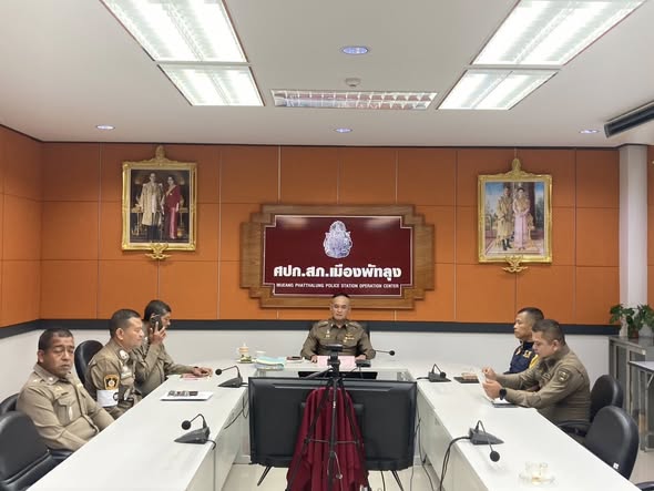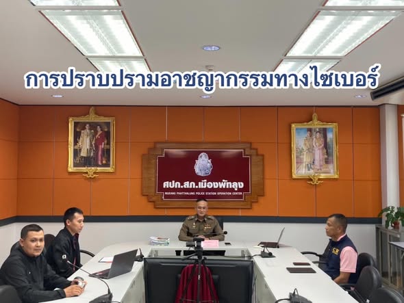 พัทลุงปลอดภัยสงบสุข วันนี้ 21 ต.ค. 2568 เวลา 13.00 น. -พ.ต.อ.จุมพฏ เลี่ยมแก้ว ผกก.สภ.เมืองพัทลุง พร้อมด้วย -พ.ต.ท.อพิเชษฐ์ อุทยารักษ์ รอง ผกก.สส.สภ.เมืองพัทลุง -พ.ต.ท.สุทิน แดงช่วง สว.สส.สภ.เมืองพัทลุง -พ.ต.ท.เกรียงไกร ลิ่มวงศ์สกุล สว.(สอบสวน)สภ.เมืองพัทลุง และเจ้าหน้าที่ผู้เกี่ยวข้องร่วมประชุมขับเคลื่อนแนวคิด ในการปราบปรามอาชญากรรมทางไซเบอร์จากท่าทีของเกาหลีได้ต่อกัมพูชา ณ ห้องประชุม ศปก.สภ.เมืองพัทลุง